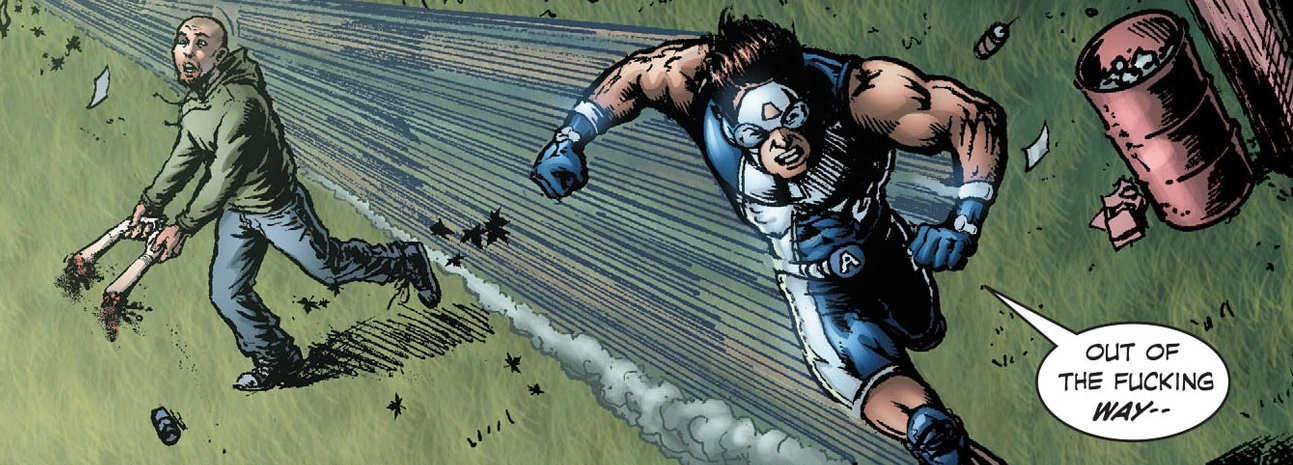 A-Train is a speedster and former member of the Teenage Kix that was recruited by The Seven as the replacement for Mister Marathon after the 9/11 incident. While fighting a supervillain, he recklessly slammed him into a wall and flung in the direction of civilians, which caused the death of Robin, Hugh Campbell's girlfriend.[1]